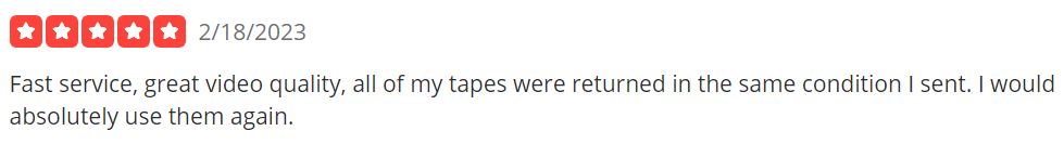 Video Conversion Price | Starting at $12.96 for the first 30 minutes of footage, then $5.46 for each additional 30 minutes. | $14.99 per tape |
