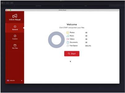 InfinitiKloud is a one-click file backup solution for PC, MAC, iOS, and Android devices. It saves your files on an SD card that can store up to 512GB worth of information.