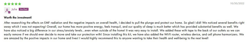 Explore real-life experiences and insights from users of EMF Harmony's products for home and office. In this section, we present a collection of customer testimonials that reflect the effectiveness and impact of our EMF protection solutions.