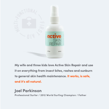 This natural healing spray goes to work in a matter of seconds. People with sunburns, chafing, rashes and cuts can spray Active Skin Repair directly onto their wounds.