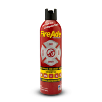 FireAde extinguishes fires from paper, fabric, wood, grease, and electrical. Because of its light and compact can, it's ideal for use in the kitchen, garage, car, RV, boat, and more. Compared to other products from our list, it has a five years shelf life and doesn't require maintenance or recharge.