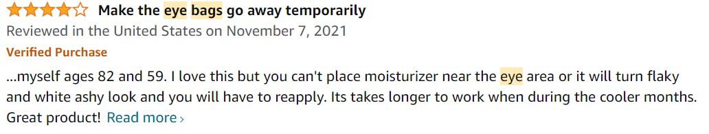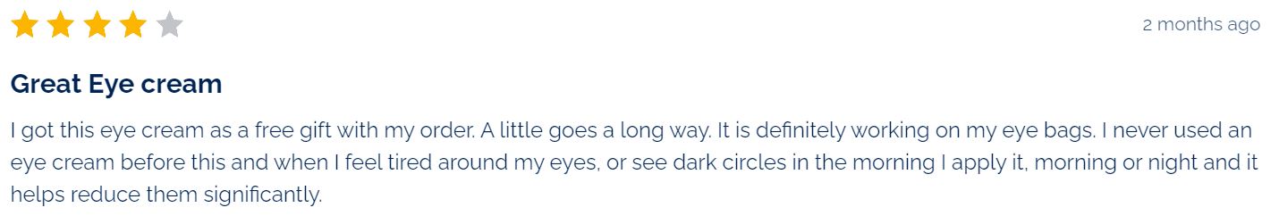 Despite its higher price point, customer feedback consistently highlights the positive results achieved with this eye gel. Users report a noticeable reduction in eye puffiness and a difference in the appearance of eye bags. It's important to mention that while some customers experience mild to moderate improvements, others have observed more significant changes after using the product for two weeks.