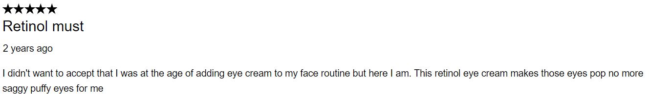 - Eye cream with retinol noticeably smooths out fine lines around the eyes