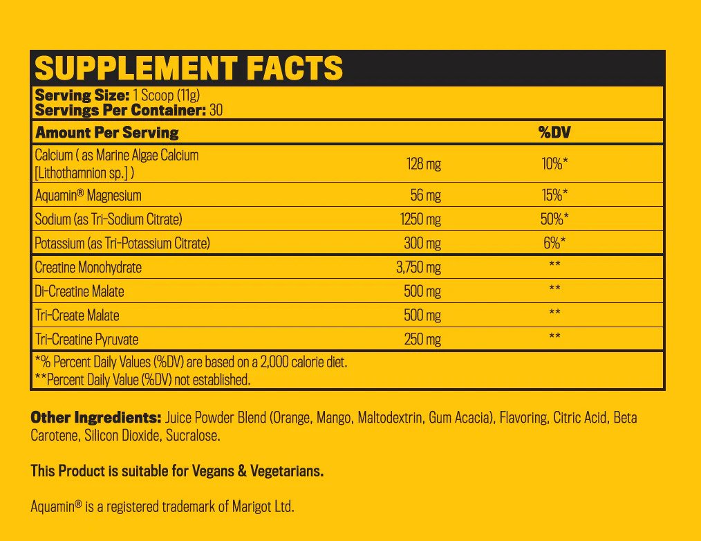 - Post-workout supplement contains creatine monohydrate and L-carnitine L-tartrate