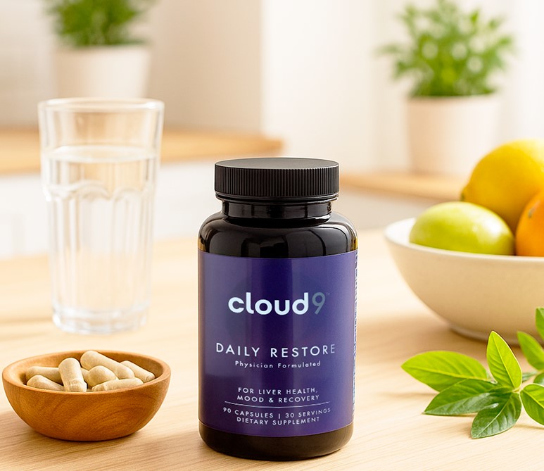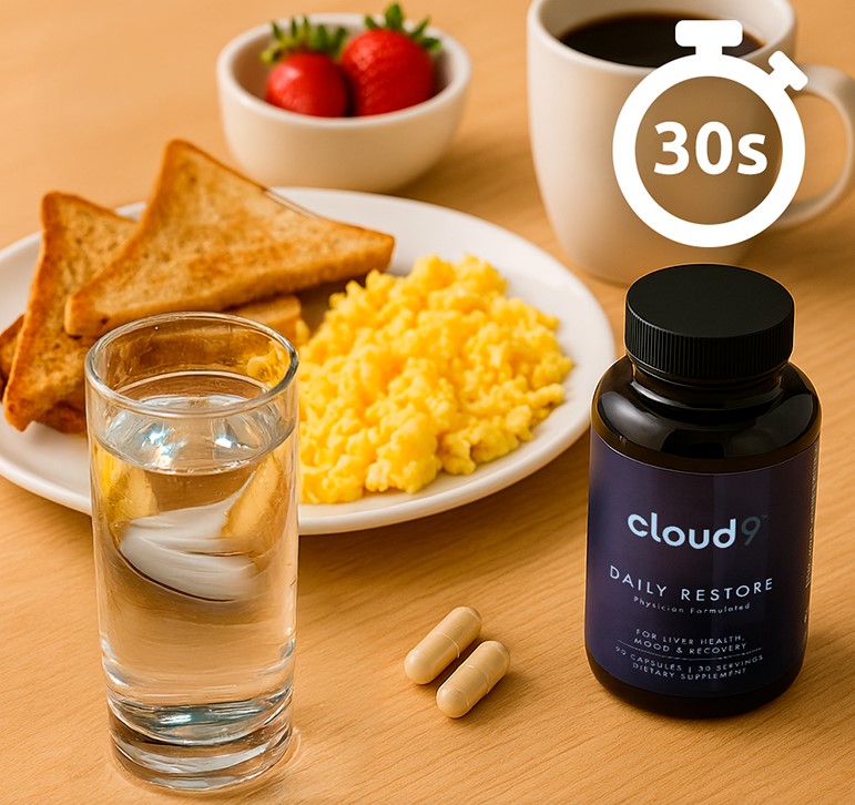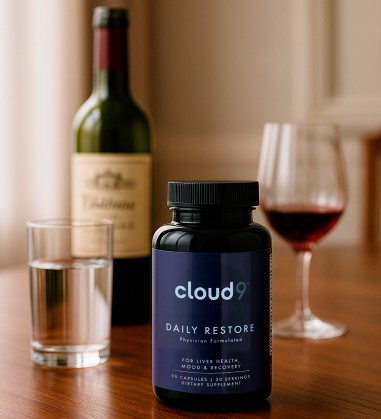 - Cloud 9 Daily Restore → Doctor-formulated, clinically backed, and specifically designed to restore what alcohol depletes energy, clarity, liver function, and mood balance.