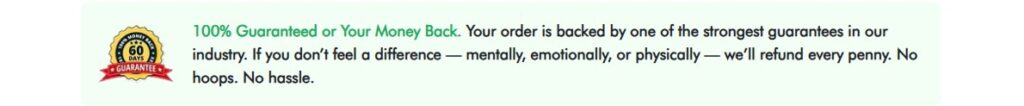 If you don’t feel the difference in your energy, clarity, or mood simply return it for a full refund. No hoops. No hassle.