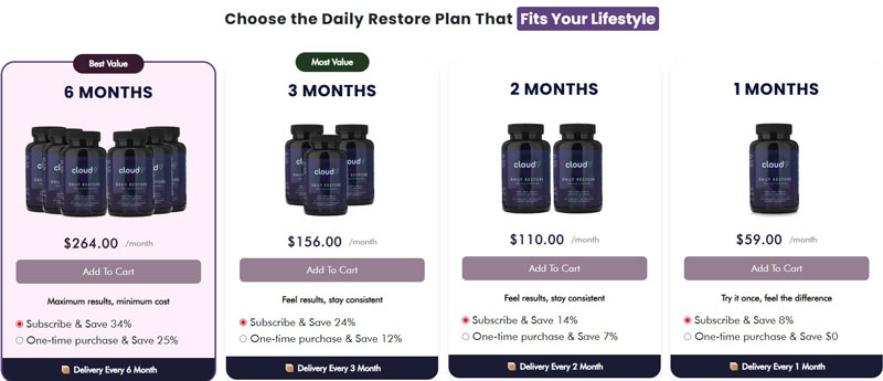 The only way to be sure you’re getting authentic Cloud 9 Daily Restore™ is by ordering directly from the official website. Every bottle is produced in an FDA-registered facility, non-GMO, 100% plant-based, and backed by strict quality controls.